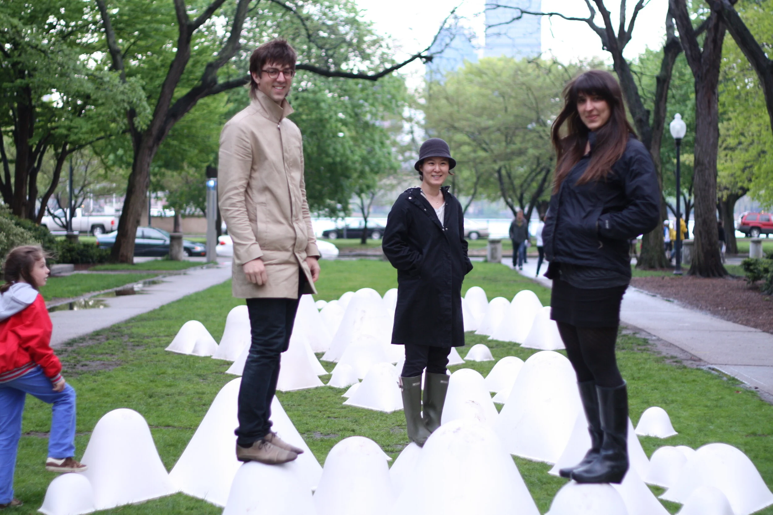 Recipient of MIT Arts Grant, this team installation project selected for MIT’s 150th anniversary celebration of Festival of Arts Science and Technology. Gradated Field is an investigation of casting plaster into thin sheet latex to produce a variety of catenary curvature. The installation created an inhabitable landscape that encourages a variety of interactions ranging from meandering by, to sitting, relaxing and lounging against the smooth plaster shapes.